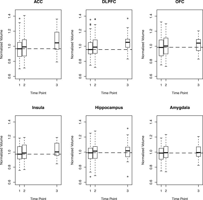 included total brain, gray matter, white matter and lobar volumes, as well as an